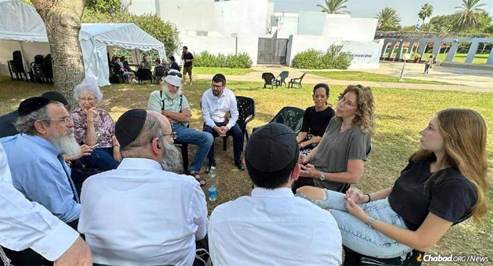 Rabbi Dovid Eliezrie, co-director of Chabad of Yorba Linda, reported to his community in a live video: “We heard stories from people who spent 30, even 40 hours in secure rooms hoping the army would come save them. We heard from families who lost loved ones, we felt their pain and expressed that it is shared by all of the Jewish people. Israel is going through a time of crisis, and we Jews around the world need to understand that they’re going through deep pain, and we have to stand together with them. We hope that G‑d sends them consolation and that our visit here gives them a sense that they are not just mourning alone, but all of the Jewish people are mourning with them.”