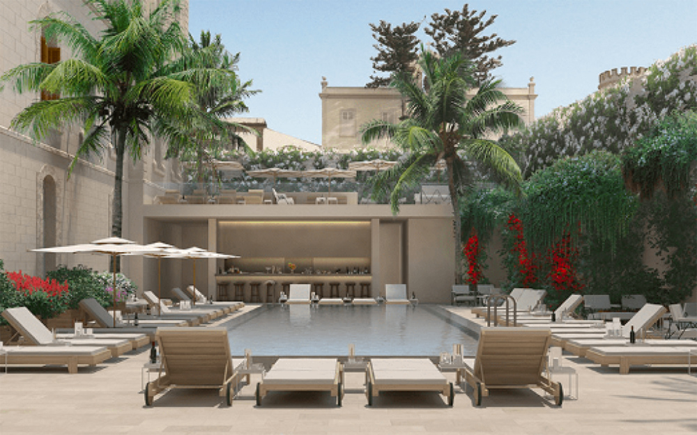 The pool deck at the Jaffa Hotel makes for a stunning backdrop for a wedding or private outdoor experience for up to 50 guests.