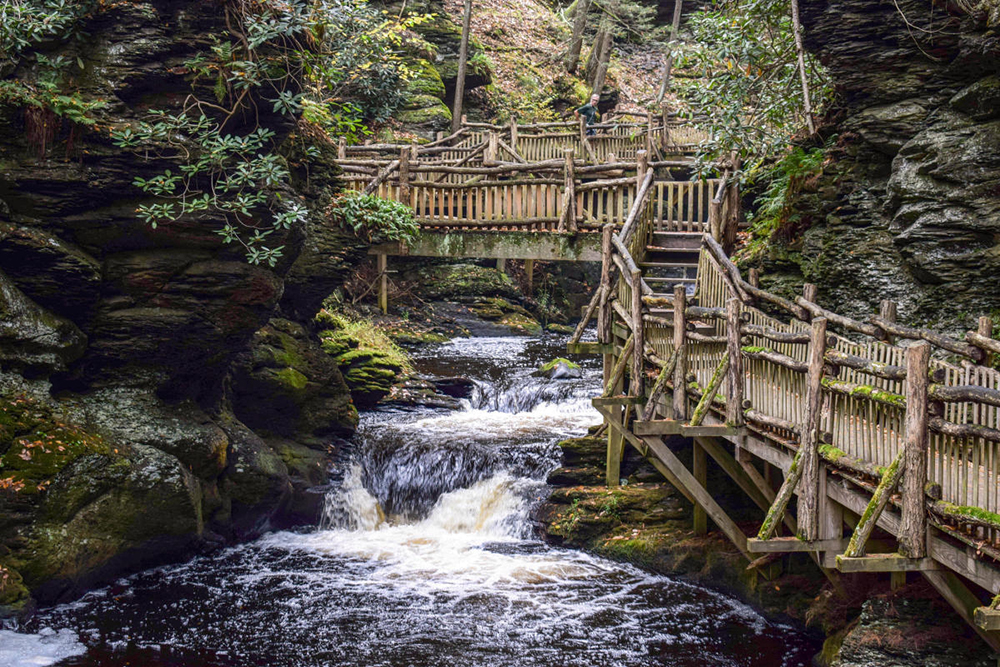 The Pocono Mountains is known for its many beautiful waterfalls, perfect places to visit on Memorial Day Weekend. Start your trip with a visit the “Niagara of Pennsylvania,” Bushkill Falls , located just outside Delaware Water Gap National Recreation Area (DWGNRA). Follow scenic boardwalk trails through idyllic forest glades, with eight waterfalls located throughout the property’s 300 acres. In the heart of DWGNRA, the Pocono Environmental Education Center has six trails to explore including the Tumbling Waters Trail . Just off Route 6, the graceful cascade at Shohola Falls can be reached via a short trail down the forest steps and is a must-visit for waterfall lovers.