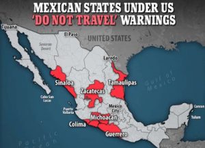 The Los Angeles Times reported that the six states have received the strongest warning from the Bureau of Consular Affairs, which cited shootings between gangs that injured or killed bystanders, and kidnappings in which tourists and lawful permanent residents or “green card” holders were targeted.
