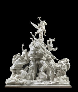 The second display of “Naples in Paris” takes place in the Sully wing’s Salle de la Chapelle (Sully wing, Level 1). In this space, an eclectic array of paintings, sculptures, and decorative arts are arranged. This grouping includes major works such as Titian’s “Portrait of Pope Paul III and his Grandsons,” Filippo Tagliolini’s complex, large-scale biscuit porcelain group “The Fall of the Giants,” which has been recently restored, and the magnificent “Farnese Casket.”