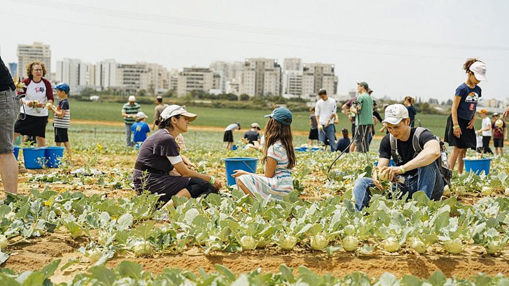 Leket volunteer activities include harvesting in a donated Rishon Letzion field owned by farmer Tal Ben Shalom, a long-time donor to the NGO who works the field and plants the crops for them to harvest.