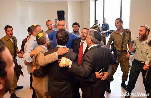 In Brooklyn, New York, the Rebbe’s Simchat Torah celebration would begin late at night and continue into the wee hours of the morning. The thousands of celebrants from all over the world were traditionally joined by Israeli diplomats who were granted the privilege of speaking with the Rebbe for a few moments during the proceedings. Between 1954 and 1963, the Rebbe would teach a new niggun (Chasidic melody) every year following the night’s dancing and singing.