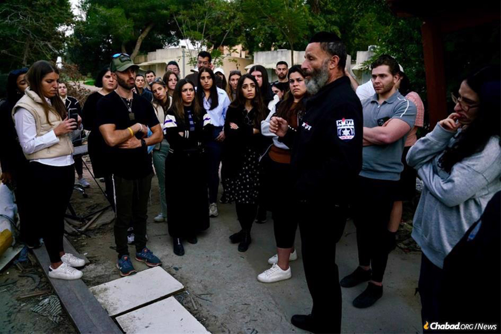 After he finished telling his story, the crowd remained silent until one broke into song. There, among the carnage of Kfar Aza, young Jews from across the United States joined in to sing Vehi Sheamda, the confident cry of the Jewish people from the Passover Haggadah proclaiming that in every generation, G‑d will protect the Jewish people from the enemies that inevitably try to annihilate them.