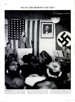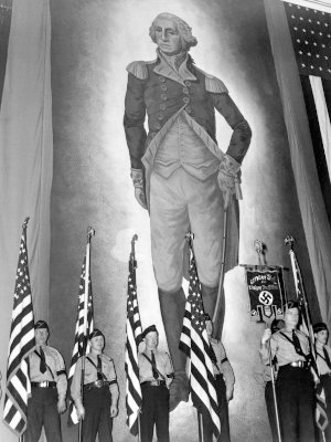 “American patriots,” intoned Bund leader Fritz Kuhn, a naturalized American citizen who’d previously worked for a Ford factory in Detroit, “you have all heard of me through the Jewish controlled press as a creature with horns, a cloven hoof, and a long tail.” The rally kicked off with the National Anthem, sung by Americans wearing swastikas and giving Nazi salutes.