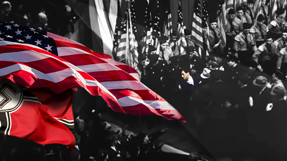 “American patriots,” intoned Bund leader Fritz Kuhn, a naturalized American citizen who’d previously worked for a Ford factory in Detroit, “you have all heard of me through the Jewish controlled press as a creature with horns, a cloven hoof, and a long tail.” The rally kicked off with the National Anthem, sung by Americans wearing swastikas and giving Nazi salutes.
