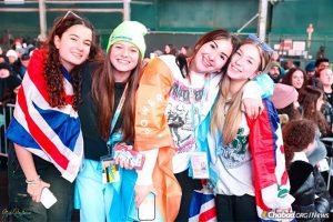The night started with the NYPD organizing two special subway trains for attendees departing from the Kingston Avenue station in Crown Heights with much singing and dancing in anticipation for the festivities ahead. The thousands of teens and chaperones filled Times Square, where their excited faces were mirrored on the many screens around Times Square, completing the “takeover.”