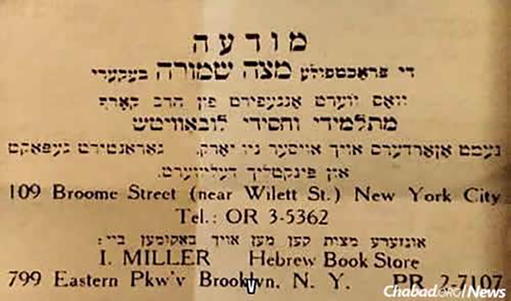 “The Rebbe Rayatz [a Hebrew acronym for R. Yosef Yitzchak] received his matzah from the Poilisher bakery,” recalls Korf. On the morning of the eve of Passover, a delegation of yeshivah students would take the subway to the bakery and personally prepare the sixth Rebbe’s matzahs.