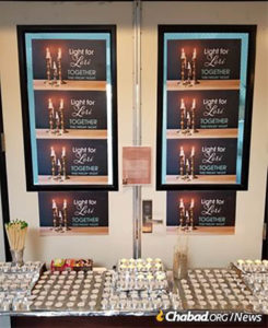 Many worshippers came early, giving themselves time before Shabbat began to put on tefillin—many for the first time—and to light Shabbat candles in memory of Lori. By the time the sun set on Poway, hundreds of candles shone in front of signs that read, “Lights for Lori” and “Be gLORIous,” the theme of the evening.