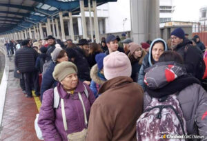 A few dozen members of the Jewish community of Kharkov (Kharkiv), Ukraine, made a last-minute break out of the decimated city this morning and have arrived safely in Dnipro. The Jewish community convoy included local Chabad-Lubavitch emissaries. “This morning we still wanted to only send our children out, but the missiles and bombs have been hammering the center of the city, and they were raining down all night. We were warned this might be the last chance,” says a tearful Miriam Moskovitz, who together with her husband, Kharkov chief rabbi Moshe Moskovitz, has directed Chabad of Kharkov since 1990.