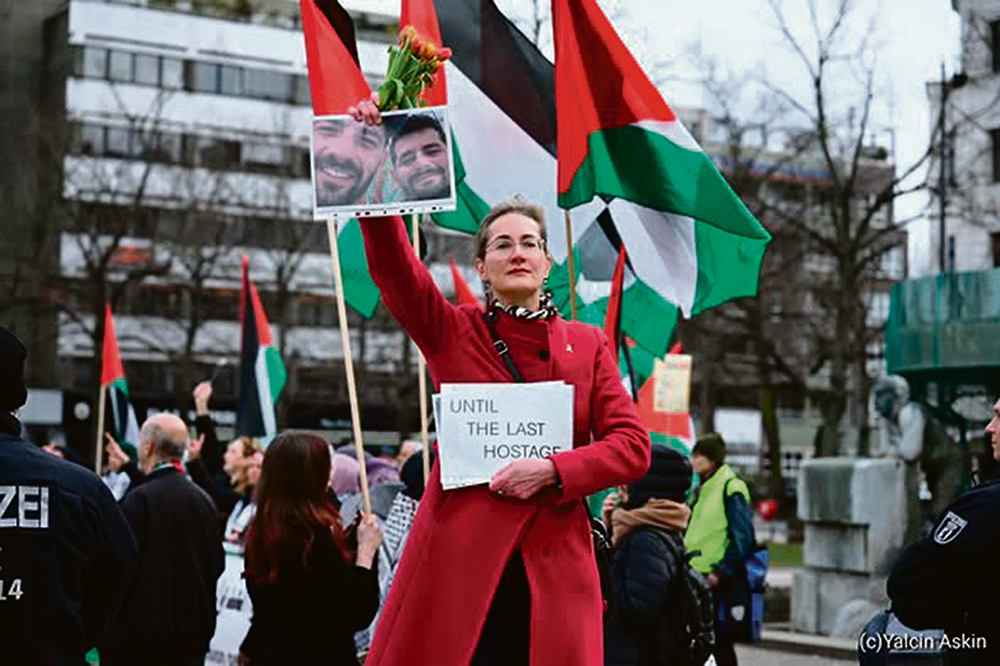 In the aftermath of the atrocities committed by Hamas, Berlin saw a surge of pro-Palestinian demonstrations – some of which displayed openly anti-Israel and, at times, antisemitic rhetoric. Amid these mass gatherings, Preisler stood almost singularly against the tide. As described by the Tagesspiegel, she became known for her poignant, personal form of protest: holding cardboard signs and bouquets of flowers, wearing brightly colored coats, and standing alone among hostile crowds. Her messages were direct, unflinching, and necessary.