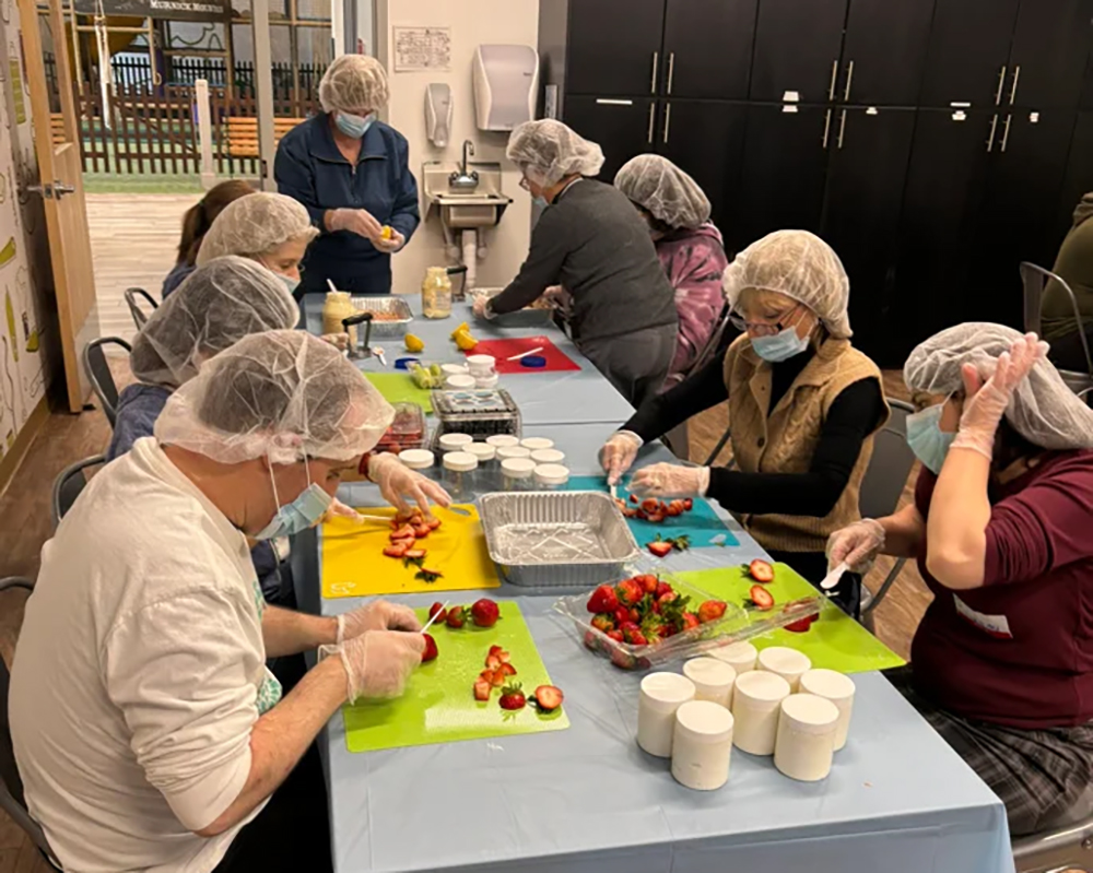 Friendship Circle’s members and volunteers are involved in every aspect of the process—from peeling vegetables and mixing homemade soup to baking quiches and packing the bags for delivery. Gathering at LifeTown every Tuesday and Wednesday, they prepare close to 200 Shabbat kits and the additional 20 to 40 specially curated Bikur Cholim brunch bags for patients in local hospitals and those recovering at home. About a dozen of LifeTown’s nearly 1,000 volunteers pitch in to help from start to finish.