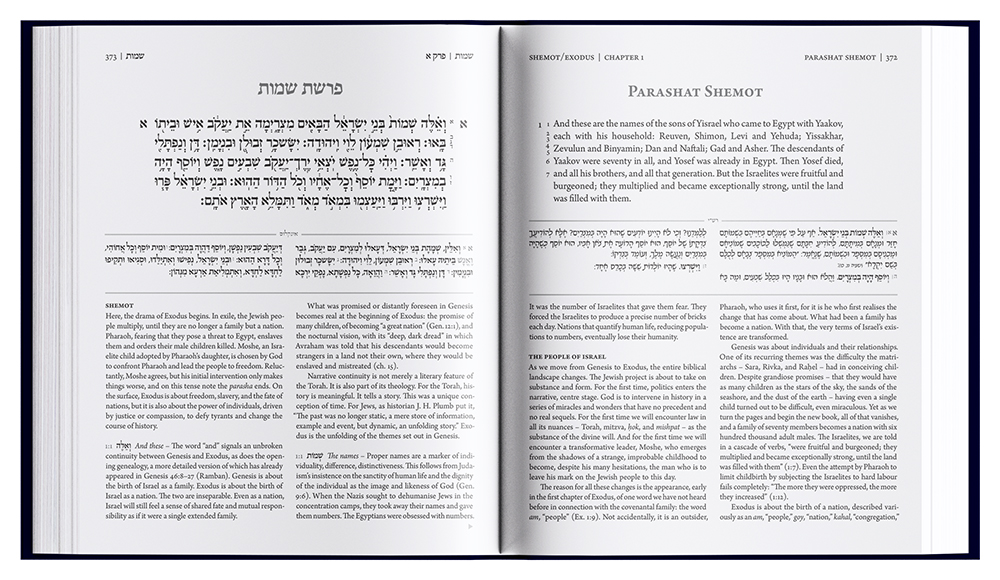 The structure of the new Humash reflects Rabbi Sacks’ methodological brilliance. His translation of the Torah accompanies the Hebrew text, while his commentary is interwoven with that of Rashi—the medieval sage whose commentary has shaped Jewish learning for centuries—and Targum Onkelos, the Aramaic rendering that anchored Torah study for millennia.