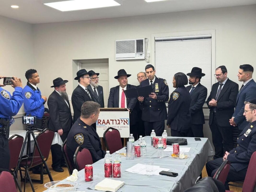 Rabbi Mendy Mirocznik, Executive Vice-President of the RAA, together with Chief Richie Taylor, recognized and honored the following members of the NYPD: