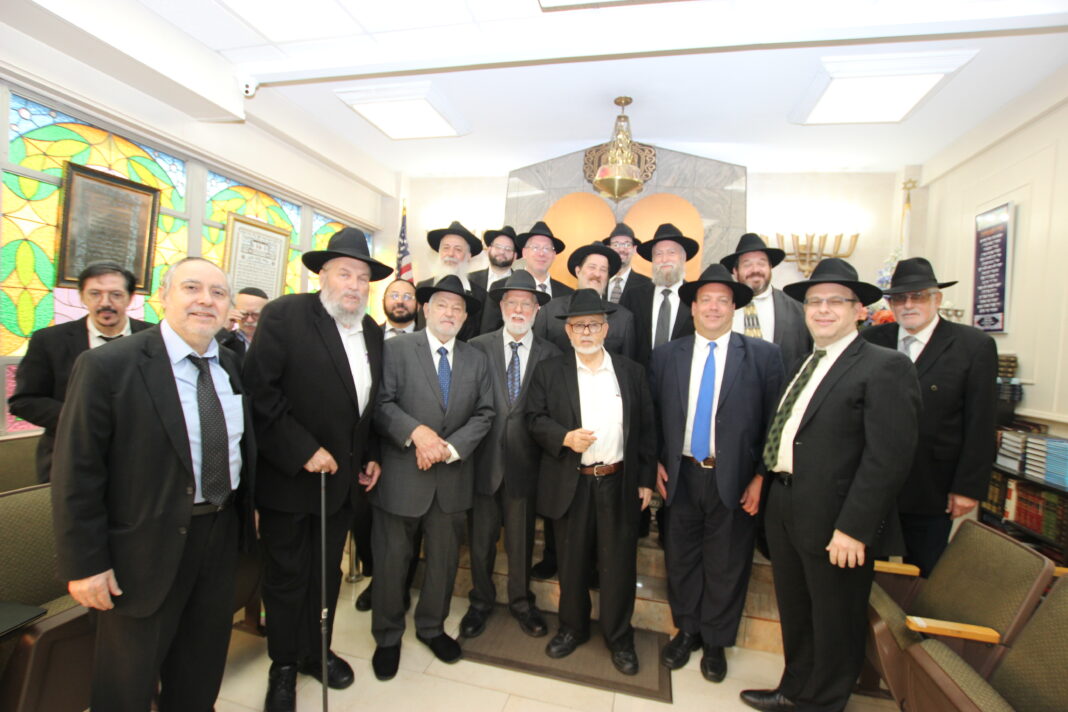 On Rosh Chodesh Av, July 19, 2023, the Igud HaRabbonim/Rabbinical Alliance of America convened its monthly conference which took place at the Ahi Ezer Yeshiva Congregation where Igud HaRabbonim Presidium Member, Rabbi Hanania Elbaz, is the Mara D’atra. The Rosh Chodesh Av Seudah and Conference was l’zecher nishmas HaGaon HaChacham Shalom Ben HaGaon HaChacham Chayim Elbaz, Zt’l father of Rabbi Hanania Elbaz and father of Rabbi Eliyahu Elbaz, who is the Rabbi of the Sephardic Lebanese Congregation of Brooklyn. In honor of the Hilula of Chacham Shalom Elbaz, Z’tl, Rabbi Hanania Elbaz delivered an erudite Dvar Halacha.