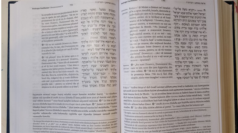 The chumash stands out in a number of ways: Although there are several Romanian translations of the Hebrew Bible, all are from a Christian lens. This is the first Jewish Romanian translation, and it features not only Hebrew text but also phonetic transliteration of the entire text in the Latin alphabet. There are also roughly 4,000 short explanations and annotations based on such classical Jewish commentators as Rashi and Ibn Ezra and texts including the Midrash and the Talmud.