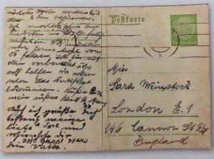 Three weeks before Rosh Hashanah, 1939, Sara received a letter from her mother, in which her mother wrote that they were fully packed and ready to go. They hoped to leave before the High Holidays and were simply waiting for the promised certificate of entry to arrive. Her father added to the bottom of the letter: