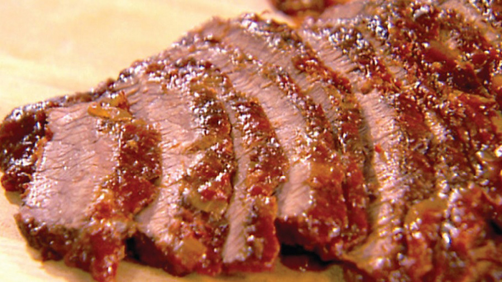 Bake for 2 ½ hours. Remove from oven. Cool and slice thinly and return meat to sauce. Rewarm and serve with sauce.
