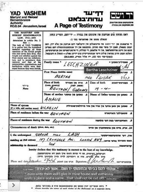 I remember watching my father filling out the questionnaire about his murdered relatives in the l960s. It was always reassuring in an odd kind of way to make the pilgrimage to the Hall of Names whenever I was in Israel, just to touch the pieces of paper that along with photographs, were the only tangible evidence of the fact that I had grandparents.