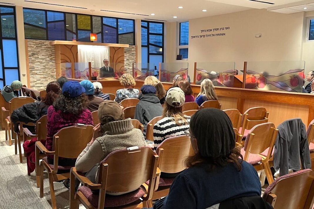 (JNS) Some 75 people gathered at Congregation Kadimah-Toras Moshe, a nearly 85-year-old Modern Orthodox synagogue in Brighton, Mass., on Sunday for a siyum, a celebration marking the completion of a unit of Torah study, in memory of the victims of Hamas’s terrorist attack in southern Israel on Oct. 7, 2023.