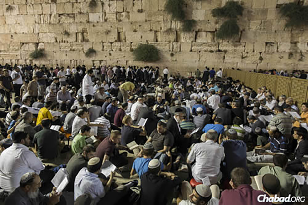 The Book of Eicha (Lamentations), Jeremiah’s poetic lament over the destruction of Jerusalem and the First Temple, is read in the synagogue as part of the evening service. Special “Kinot” (elegies) are also recited, both at night and during the day.
